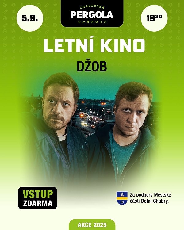 Letní kino: Džob Přijďte v pátek 5. 9. do letního kina v Chaberské pergole na Džob. Promítání od 19:30 hodin. Díky podpoře městské části vstup ZDARMA. Komedie Tomáše Vorla volně navazující na snímky Gympl a Vejška. Průšvihy kamarádů Petra a Michala ze školních let jsou minulostí. Školní léta jsou pryč a oba se snaží chovat zodpovědně. Žijí ale naprosto rozdílné životy: Kolman se již usadil, má dobře placenou práci v korporátu a rodinu s malou dcerkou, druhý je samotář s nenaplněnými uměleckými ambicemi a živí se výrobou reklamních předmětů. Přesto však nerezignoval na uměleckou tvorbu. A stále je oba spojuje jejich vášeň: graffiti. obrovolné. | |